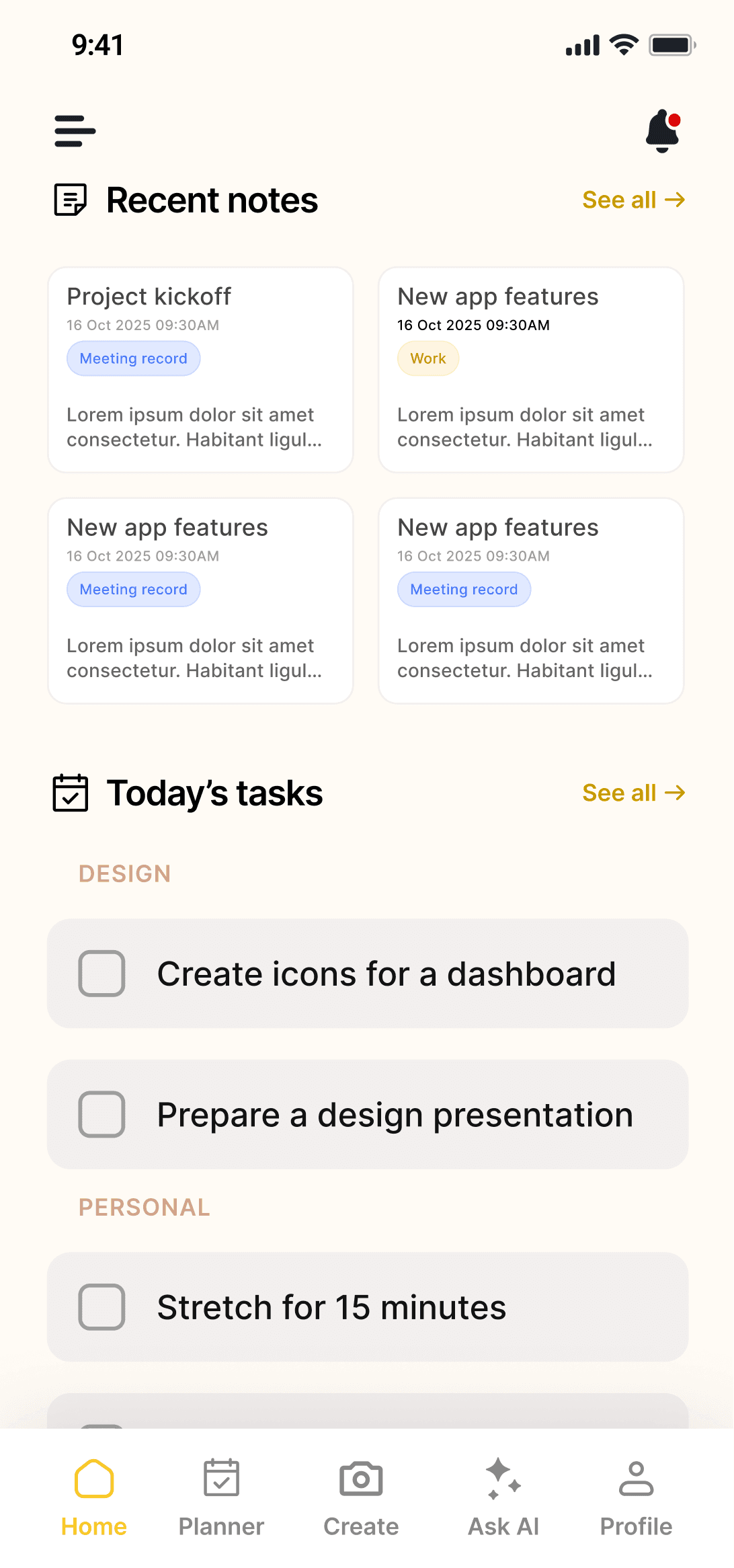 Digitize your notes and let AI transform everything into structured tasks, appointments, and notes.